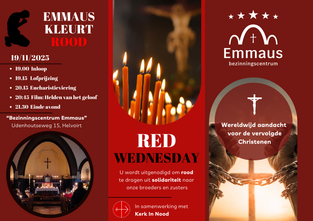 Kijk voor meer informatie op emmausbezinningscentrum.nl of redwednesday.nl