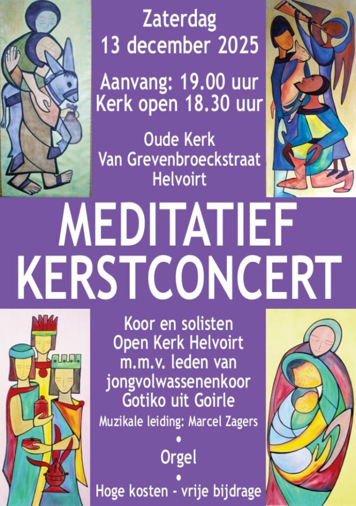 Het meditatief Kerstconcert van de Open Kerk wordt dit jaar sterk vernieuwd. Met teksten en liederen die ook aansluiten bij de leefwereld van jongeren. Het concert vindt plaats op zaterdag 13 december. Aanvang 19.00 uur.