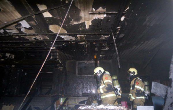 De brandweer zette twee blusvoertuigen in om de brand op de beneden verdieping onder controle te krijgen.
