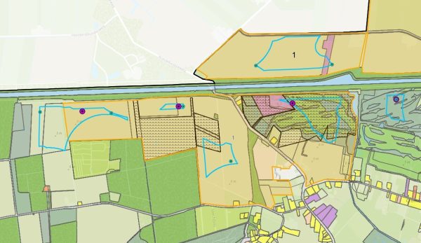 Afbeelding: Voorkeurslocatie voor windturbines rond het Drongelens Kanaal tussen de Margriet en de Deutersestraat. Bron: MER Gemeente Vught
