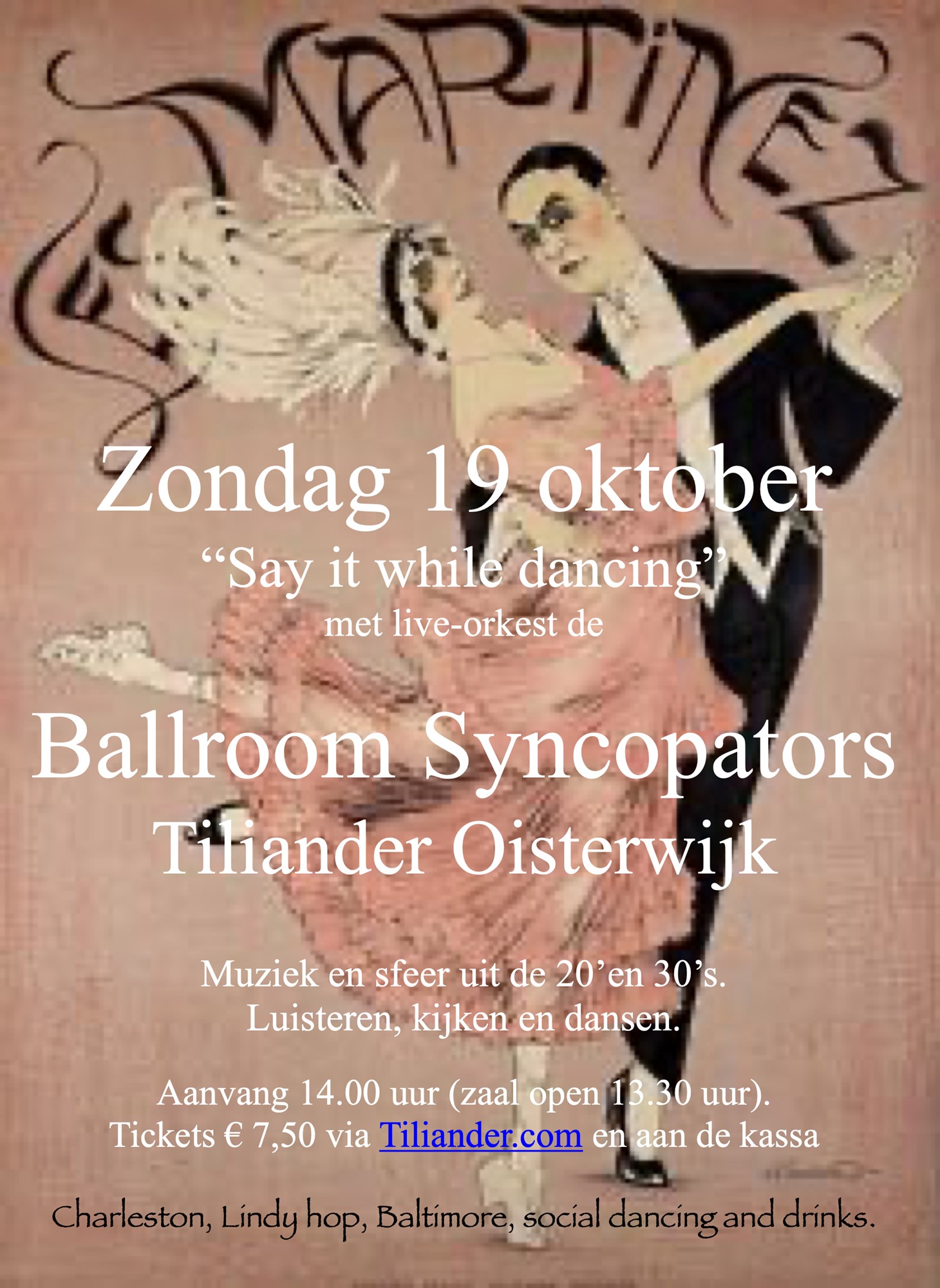 Het leek uit de tijd maar op zondagmiddag 19 oktober is dat weer helemaal in tijdens de dansmiddag met de Ballroom syncopators in de Tiliander te Oisterwijk.