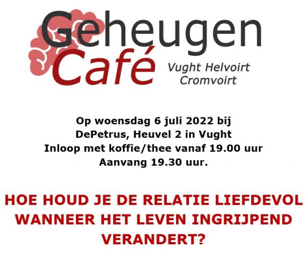 Het Geheugencafé is één van de activiteiten van het Dementienetwerk Vught en wordt georganiseerd door een werkgroep met vertegenwoordigers van Vughterstede, Huis73 Bibliotheek Vught, Ouderen Samen, Vereniging 55+ Helvoirt en ABZ.