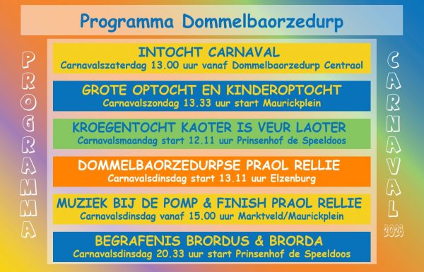DOMMELBAORZEDURP – 13 februari 2023. Op zondag 19 februari zullen de Grote Optocht en de Kinderoptocht gezamenlijk plaatsvinden in Dommelbaorzedurp onder het motto: Dees jaor gaot alles anders.