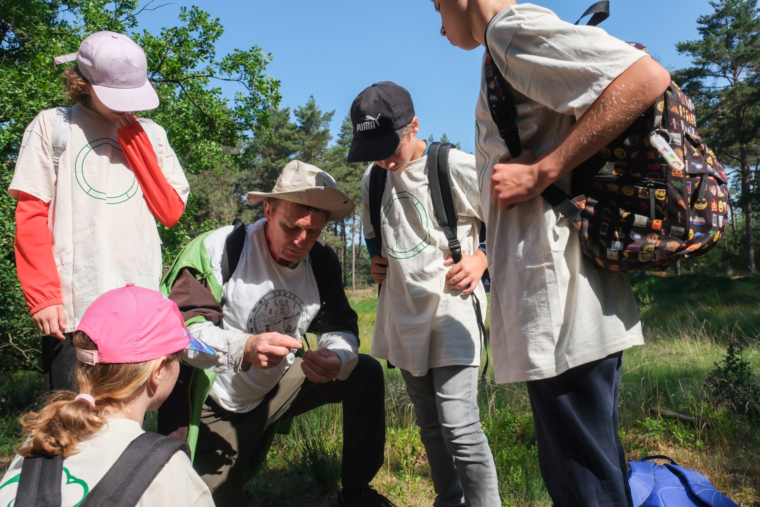 Ze mogen in het bos eigenlijk niet te veel geluid maken, maar kunnen hun enthousiasme niet bedwingen. Vandaag mogen ze een héle dag buiten op pad. Ze hebben geen flauw idee wat ze gaan doen. Leuk, avontuurlijk, maar ook een beetje spannend. Vertrouwd met de natuur Zó veel te beleven Tot volgende week Over Het Bewaarde Land ![]() © foto’s Josine Claasen |