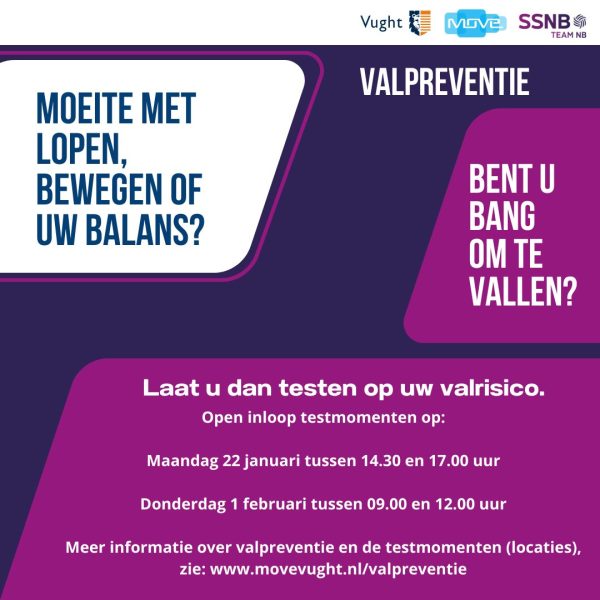 De gemeente Vught en MOVE Vught zijn het valpreventieprogramma 2024 aan het vormgeven. Naast Fysiofit Vught haakt ook Fysiotherapiepraktijk Bruyst aan. Zij gaan in Vught én in Helvoirt cursussen aanbieden. Er zijn nog een aantal praktijken die in 2024 graag gaan aanhaken. Dit betekent dat we meer inwoners kunnen gaan testen op hun valrisico. De eerste stap is het opsporen van valrisico. De buurtsportcoaches gaan de komende tijd de inwoners van Vught, Helvoirt en Cromvoirt testen op hun valrisico. Dit doen ze door het afnemen van drie vragen en ze nemen een loopanalyse af met behulp van een ‘smartfloor’. Dit is een loopmat van 6 meter en mensen moeten op deze mat 2 keer op en neer lopen. In deze mat zitten allerlei sensoren en deze meten het valrisico. De loopanalyse kan met of zonder hulpmiddel (stok/rollator) plaatsvinden.