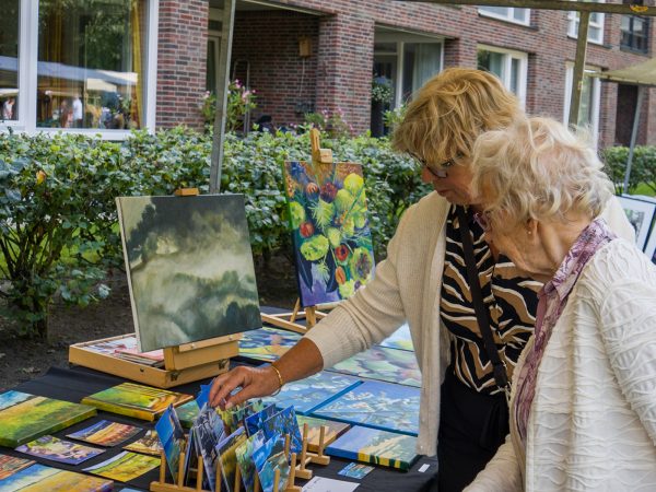 De middag wordt aangekleed met vrolijke livemuziek. Tegen betaling kun je genieten van een drankje op het terras. Je bent van harte uitgenodigd om een bezoek te brengen aan deze kleurrijke markt! De kunstmarkt wordt in samenwerking met Wzc Theresia georganiseerd.