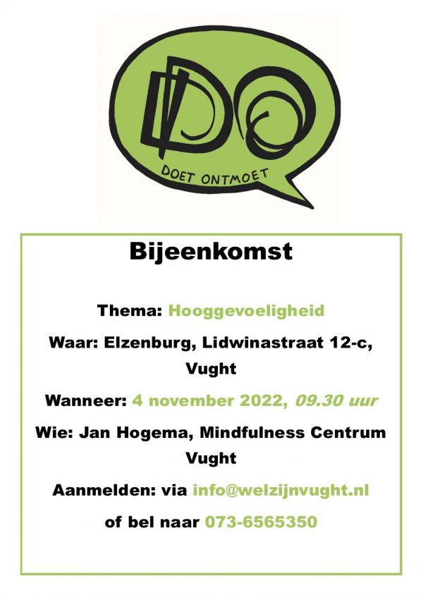 Op 4 november 2022 wordt de workshop hooggevoeligheid gegeven door Jan Hogema (bekend van de workshop mindfulness)