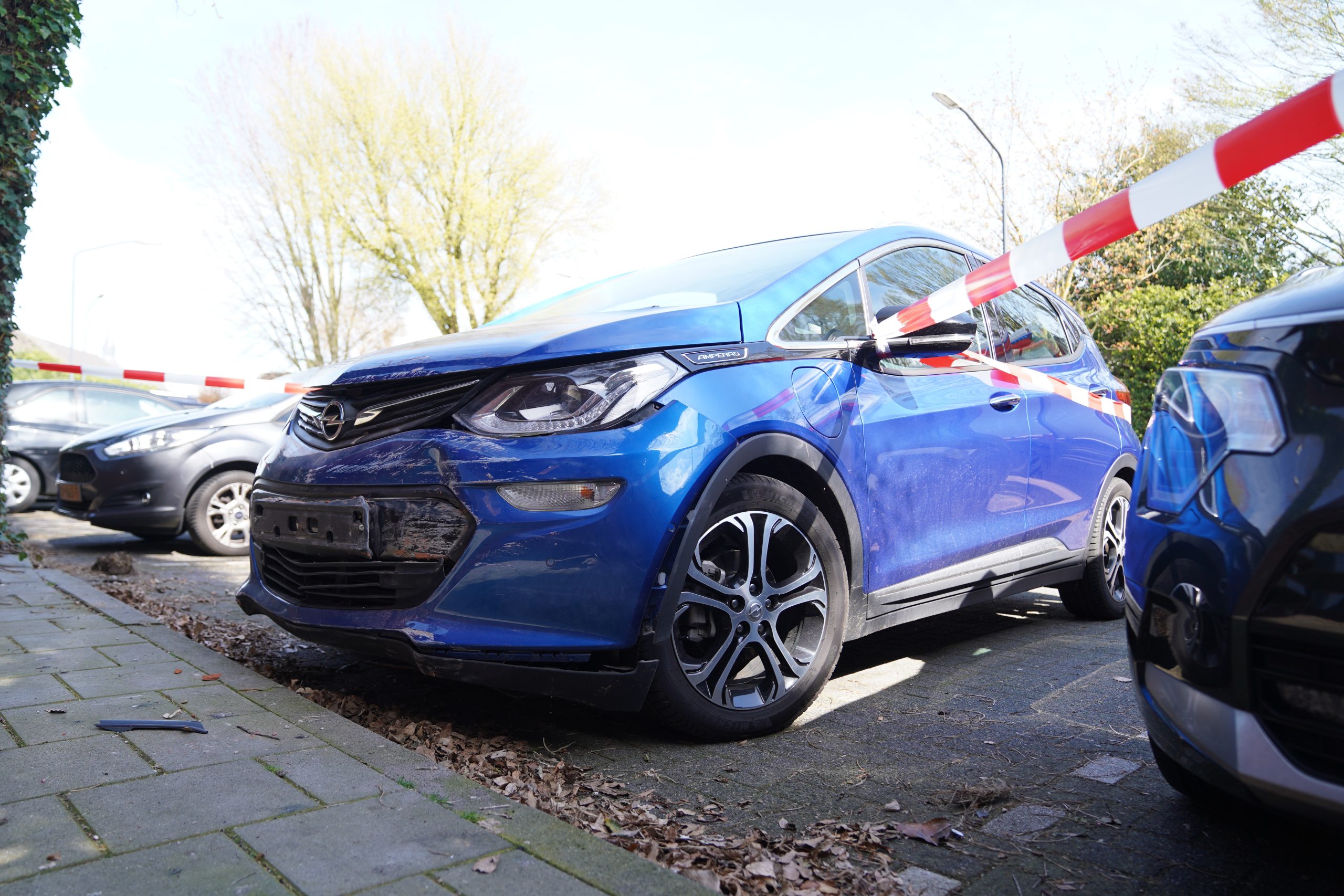De vrouw die in de auto reed heeft vermoedelijk het gaspedaal ingetrapt in plaats van de rem. Zij is ongedeerd.